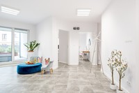 Lokal o łącznej powierzchni 85m2 położony jest na parterze w 3 piętrowym budynku z 2017 roku i składa się z czterech gabinetów, recepcji z poczekalnią, łazienki oraz pomieszczenia socjalnego.